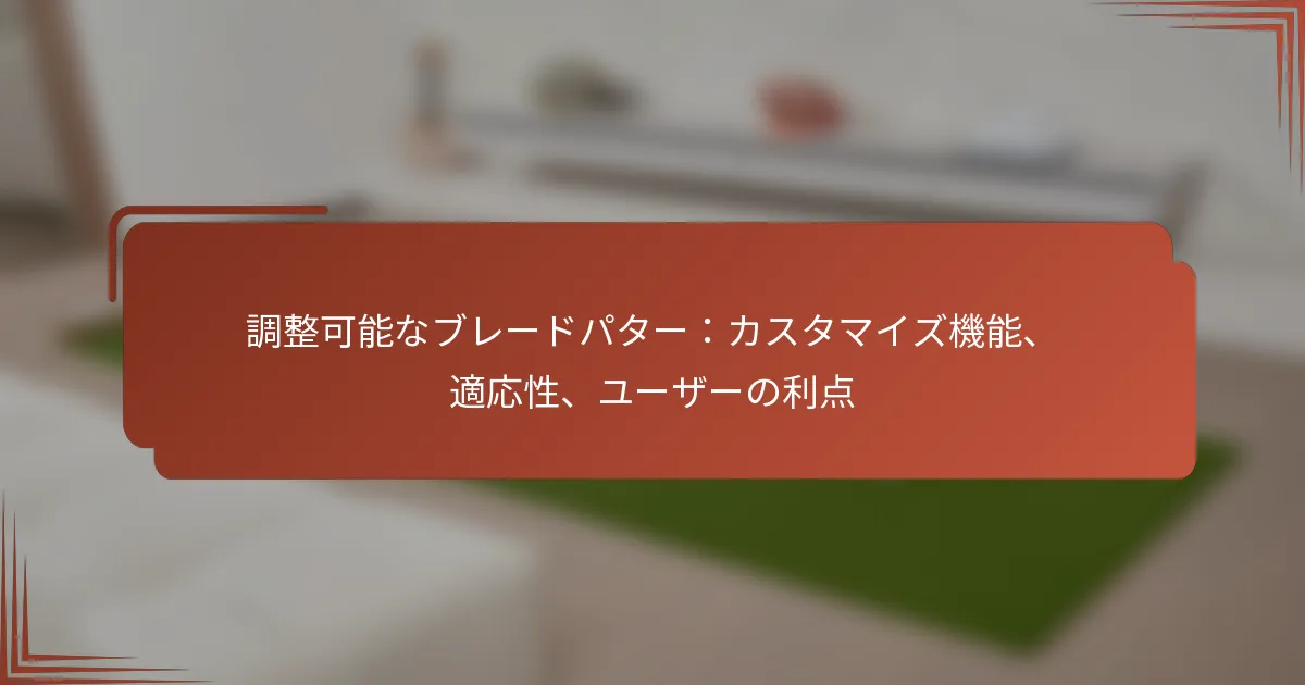 調整可能なブレードパターを購入する際は、カスタマイズ機能、プレイスタイルへの適応性、ユーザーの利点などの要素を考慮してください。これらの要素は、グリーンでのパフォーマンスに大きな影響を与え、全体的なゴルフ体験を向上させることができます。