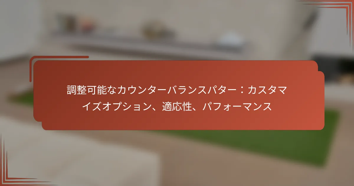 調整可能なカウンターバランスパターは、カスタマイズとバランスを通じてパッティングパフォーマンスを向上させるために設計された特別なゴルフクラブです。これらのパターは、ゴルファーが重量配分や長さを変更できるようにし、個々の好みに応じてストローク中の安定性を向上させます。
