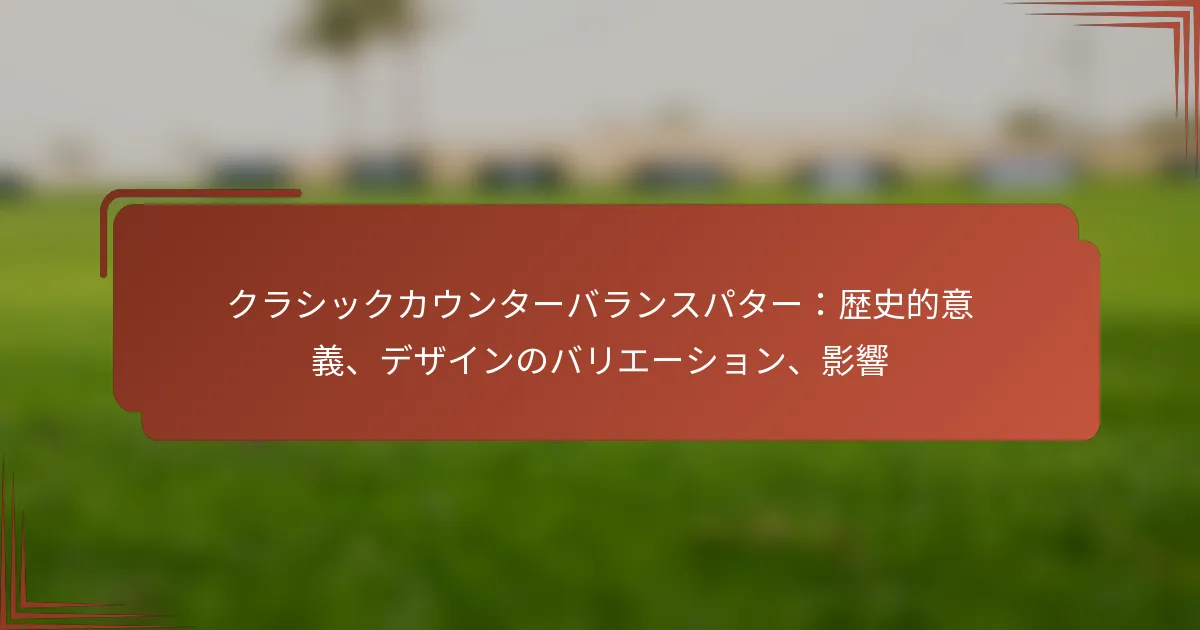 クラシックなカウンターバランスパターは現代ゴルフにどのように影響を与えるか?