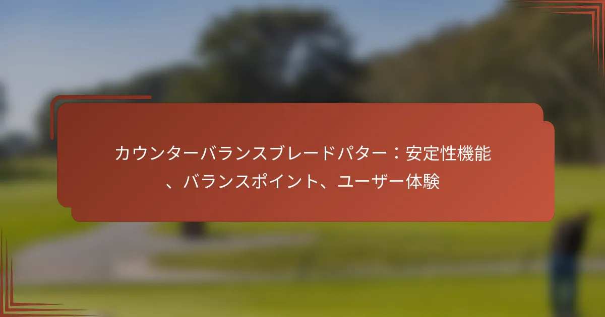 カウンターバランスブレードパターは、安定性を高め、パッティング精度を向上させるように設計されており、より良いパフォーマンスを求めるゴルファーの間で人気があります。ユーザーは、より一貫した感触と改善されたアライメントを報告しており、これがグリーンでの自信の向上につながることがあります。