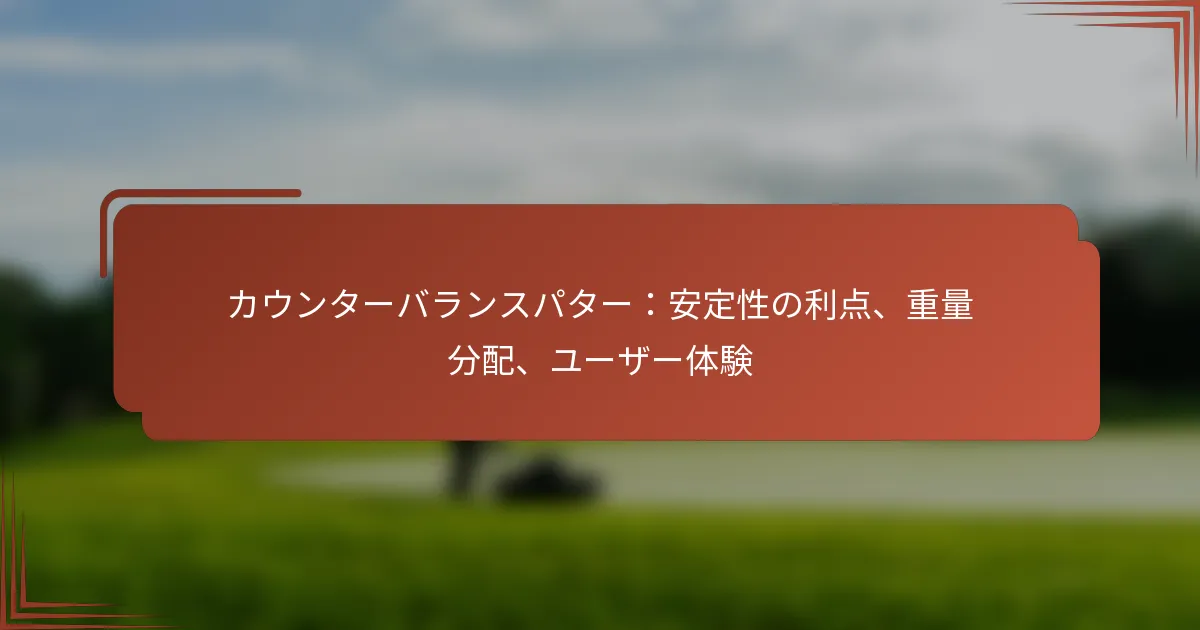 カウンターバランスパターは、安定性と重さの分配を改善することでユーザー体験を向上させ、パッティング中のコントロールを向上させます。多くのゴルファーは、これらのパターを使用することでより自信を持ち、快適に感じると報告しており、これがグリーン上での全体的なパフォーマンスに良い影響を与えることがあります。