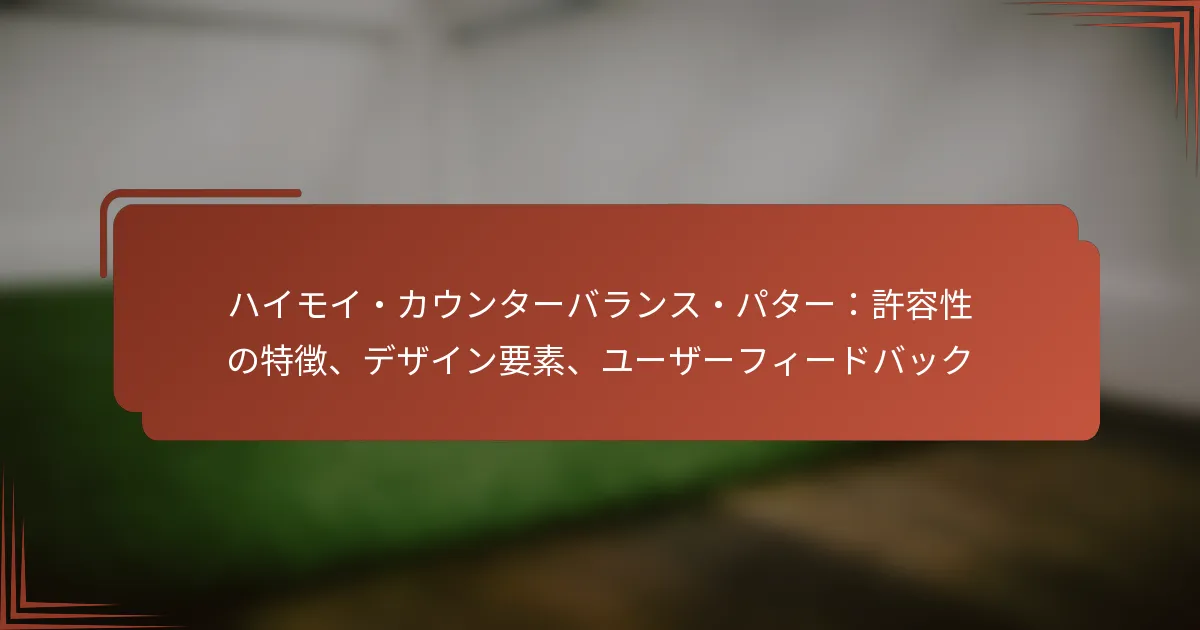 高Moiカウンターバランスパターの許容性を評価するために、ゴルファーはさまざまな条件下で実際のテストを行うべきです。これには、異なるグリーンスピードや傾斜での練習が含まれ、パターが多様な状況でどのように機能するかを評価します。プレイヤーは、他のパターとの結果を比較して、自分のプレースタイルに最も許容性のあるモデルを特定することもできます。