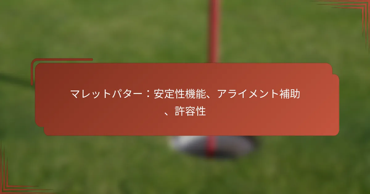 マレットパターにおける安定性の特徴は、グリーンでの一貫したパフォーマンスを達成するために重要です。主要な要素には、デザイン特性、素材、技術革新、重量配分が含まれ、これらが協力してゴルファーのコントロールと精度を向上させます。