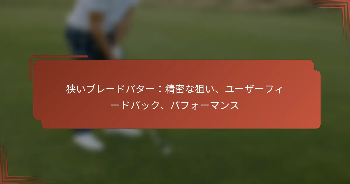 ナローブレードパターを選ぶ際は、距離のコントロール、精度、フィーリング、フィードバックなどのパフォーマンス指標に注目してください。これらの要素は、パッティングパフォーマンスや全体的なゲームに大きく影響します。各指標がプレーにどのように影響するかを理解することで、情報に基づいた選択が可能になります。